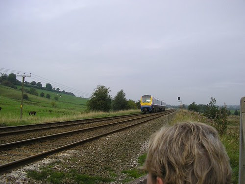 On the far side of the A6 we continued down a path to cross a railway line. It was a bit like “look at the submarine” when on Isle of Arran. Me, “I can hear a train”; Chris “very funny”; Train preceded by “two tone horn”. No surprise that I wasn’t believed!